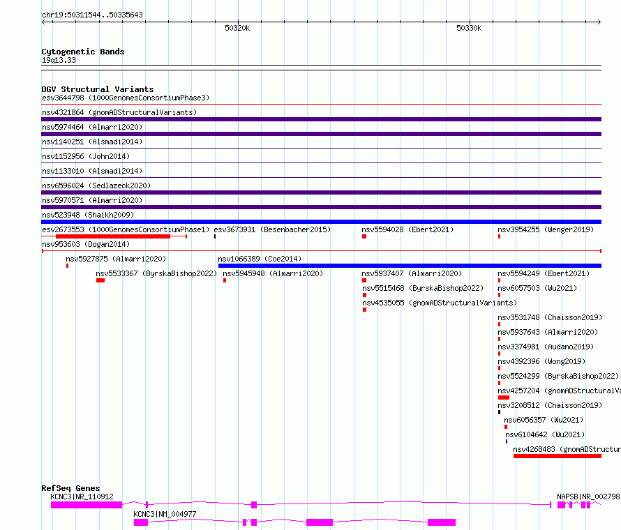 Variant DetailsVariant: nsv953603| Internal ID | 17302477 | | Landmark | | | Location Information | | | Cytoband | 19q13.33 | | Allele length | | Assembly | Allele length | | hg38 | 24100 | | hg19 | 24100 |