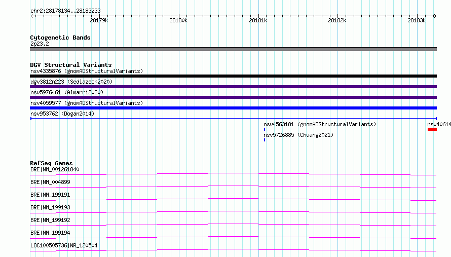 Variant DetailsVariant: nsv953762| Internal ID | 17302636 | | Landmark | | | Location Information | | | Cytoband | 2p23.2 | | Allele length | | Assembly | Allele length | | hg38 | 5100 | | hg19 | 5100 |