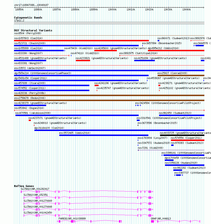Variant DetailsVariant: nsv953842| Internal ID | 16956029 | | Landmark | | | Location Information | | | Cytoband | 17p11.2 | | Allele length | | Assembly | Allele length | | hg38 | 102100 | | hg19 | 102100 |