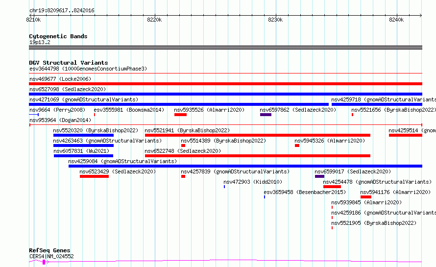 Variant DetailsVariant: nsv953964| Internal ID | 17302838 | | Landmark | | | Location Information | | | Cytoband | 19p13.2 | | Allele length | | Assembly | Allele length | | hg38 | 32400 | | hg19 | 32400 |
