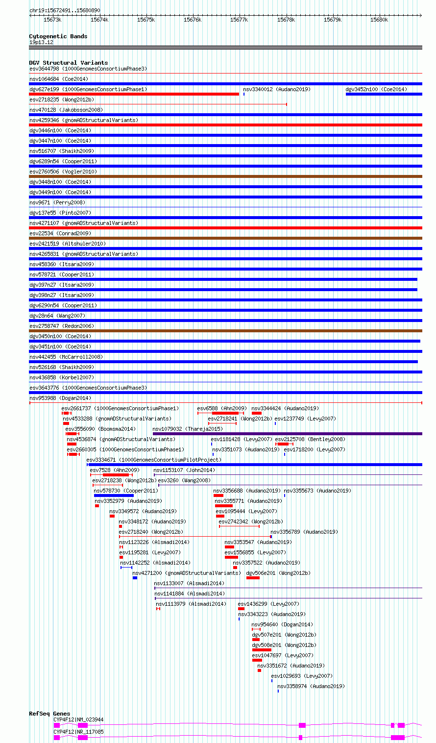 Variant DetailsVariant: nsv953988| Internal ID | 16956175 | | Landmark | | | Location Information | | | Cytoband | 19p13.12 | | Allele length | | Assembly | Allele length | | hg38 | 8400 | | hg19 | 8400 |