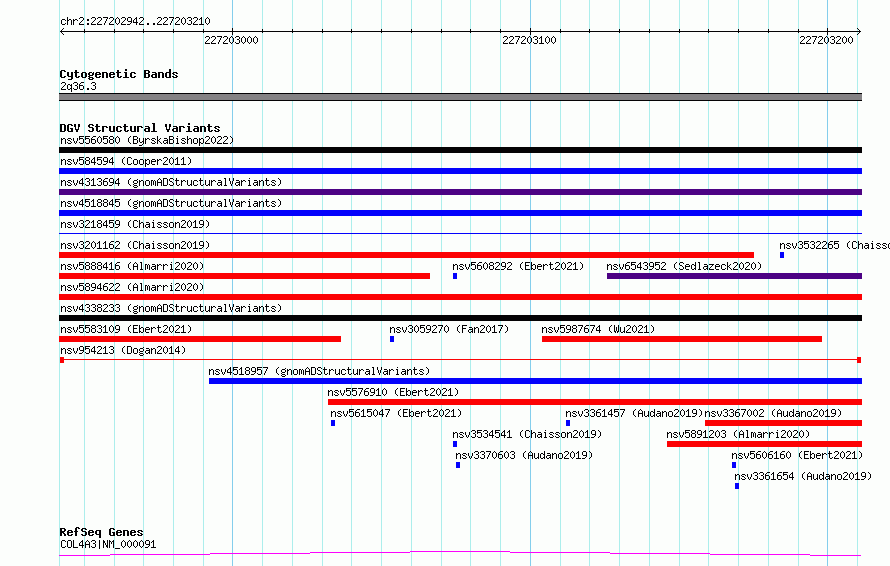 Variant DetailsVariant: nsv954213| Internal ID | 17303087 | | Landmark | | | Location Information | | | Cytoband | 2q36.3 | | Allele length | | Assembly | Allele length | | hg38 | 269 | | hg19 | 269 |