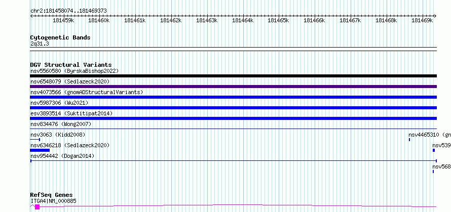 Variant DetailsVariant: nsv954442| Internal ID | 17303316 | | Landmark | | | Location Information | | | Cytoband | 2q31.3 | | Allele length | | Assembly | Allele length | | hg38 | 11300 | | hg19 | 11300 |