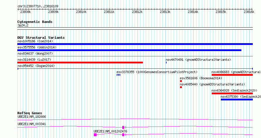 Variant DetailsVariant: nsv954452| Internal ID | 17303326 | | Landmark | | | Location Information | | | Cytoband | 3p24.3 | | Allele length | | Assembly | Allele length | | hg38 | 8400 | | hg19 | 8400 |