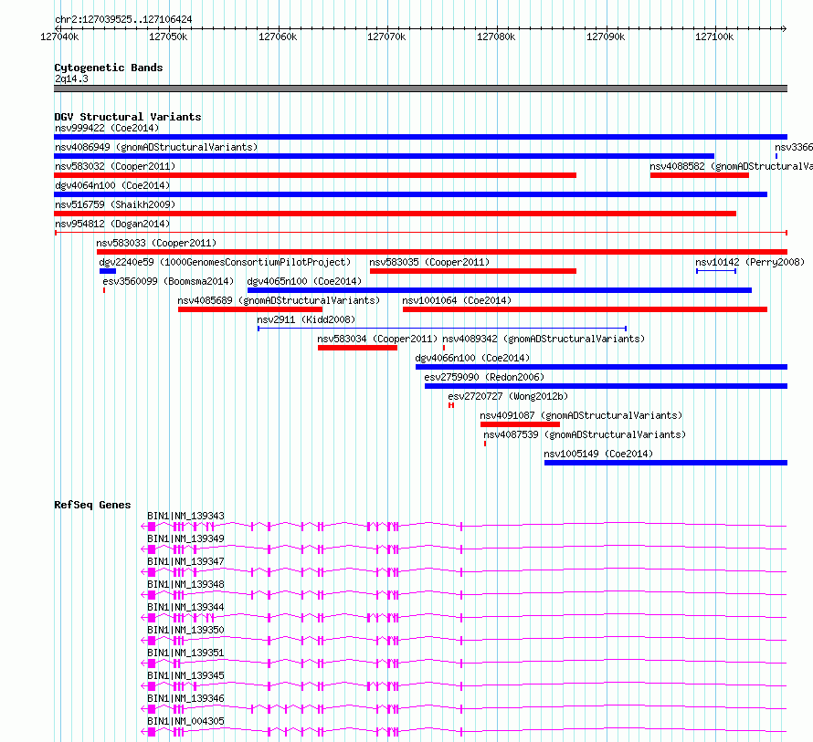 | | Variant Type | CNV deletion | | Copy Number | | | Allele State | | | Allele Origin | | | Probe Count | | | Validation Flag | | | Merged Status | M | | Merged Variants | | | Supporting Variants | nssv3001890 | | Samples | BILGI_BIOE | | Known Genes | BIN1 | | Method | Sequencing | | Analysis | | | Platform | Illumina HiSeq 2000 | | Comments | | | Reference | Dogan_et_al_2014 | | Pubmed ID | 24416366 | | Accession Number(s) | nsv954812