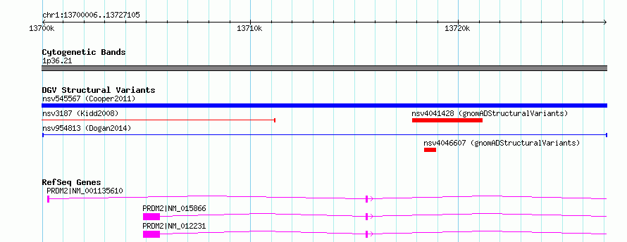 | | Variant Type | CNV duplication | | Copy Number | | | Allele State | | | Allele Origin | | | Probe Count | | | Validation Flag | | | Merged Status | M | | Merged Variants | | | Supporting Variants | nssv3003086 | | Samples | BILGI_BIOE | | Known Genes | PRDM2 | | Method | Sequencing | | Analysis | | | Platform | Illumina HiSeq 2000 | | Comments | | | Reference | Dogan_et_al_2014 | | Pubmed ID | 24416366 | | Accession Number(s) | nsv954813