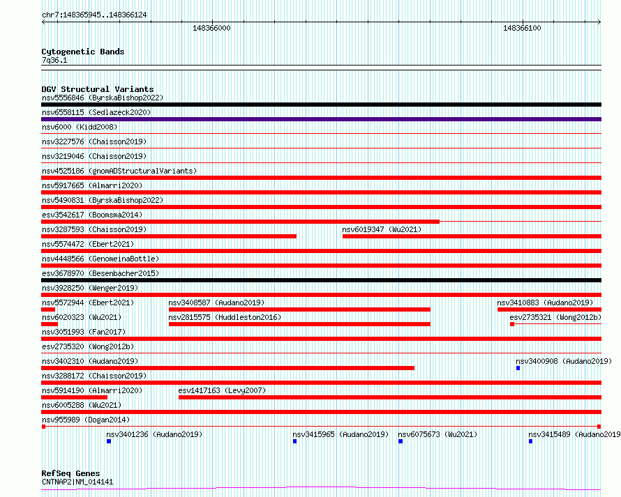 Variant DetailsVariant: nsv955989| Internal ID | 17304862 | | Landmark | | | Location Information | | | Cytoband | 7q36.1 | | Allele length | | Assembly | Allele length | | hg38 | 180 | | hg19 | 180 |