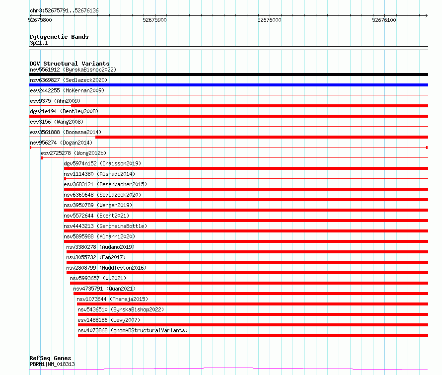 Variant DetailsVariant: nsv956274| Internal ID | 17305147 | | Landmark | | | Location Information | | | Cytoband | 3p21.1 | | Allele length | | Assembly | Allele length | | hg38 | 346 | | hg19 | 346 |