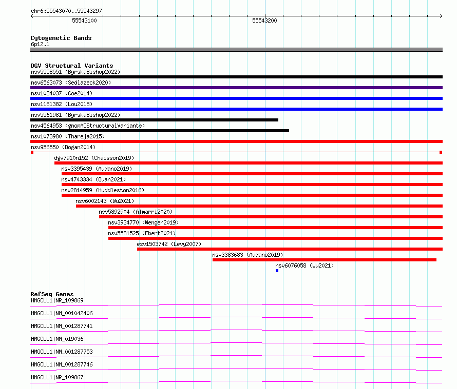 Variant DetailsVariant: nsv956550| Internal ID | 17305423 | | Landmark | | | Location Information | | | Cytoband | 6p12.1 | | Allele length | | Assembly | Allele length | | hg38 | 228 | | hg19 | 228 |