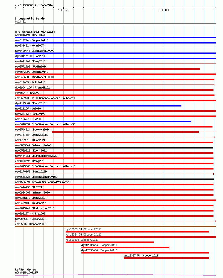 Variant DetailsVariant: nsv957657| Internal ID | 17306530 | | Landmark | | | Location Information | | | Cytoband | 8q24.22 | | Allele length | | Assembly | Allele length | | hg38 | 1998 | | hg19 | 1998 |