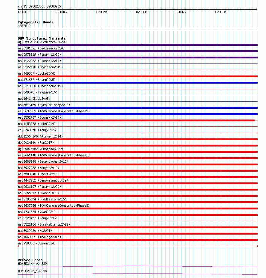 Variant DetailsVariant: nsv958806| Internal ID | 17307679 | | Landmark | | | Location Information | | | Cytoband | 15q25.2 | | Allele length | | Assembly | Allele length | | hg38 | 6024 | | hg19 | 6024 |