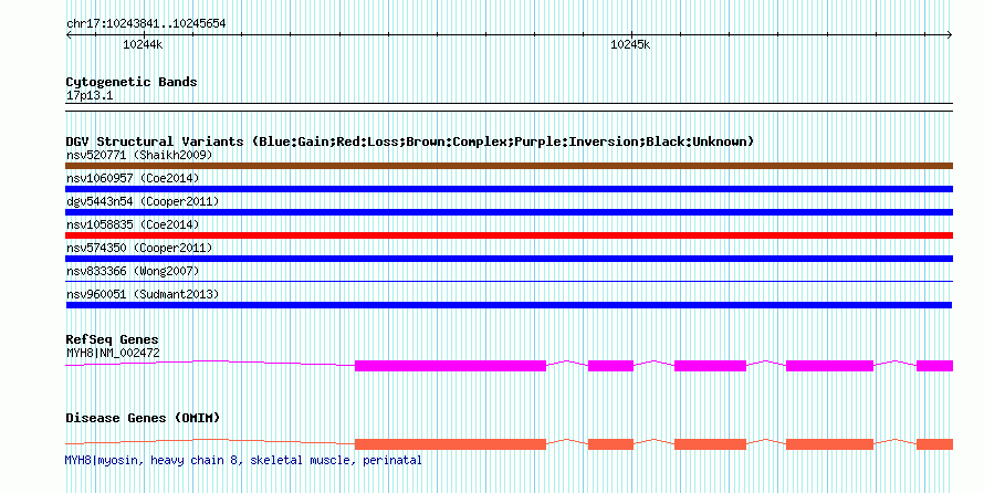 Variant DetailsVariant: nsv960051| Internal ID | 18595304 | | Landmark | | | Location Information | | | Cytoband | 17p13.1 | | Allele length | | Assembly | Allele length | | hg38 | 1814 | | hg19 | 1814 | | hg18 | 1814 |
