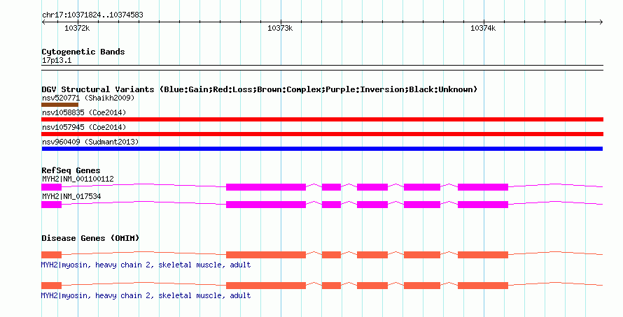 Variant DetailsVariant: nsv960409| Internal ID | 18595660 | | Landmark | | | Location Information | | | Cytoband | 17p13.1 | | Allele length | | Assembly | Allele length | | hg38 | 2760 | | hg19 | 2760 | | hg18 | 2760 |