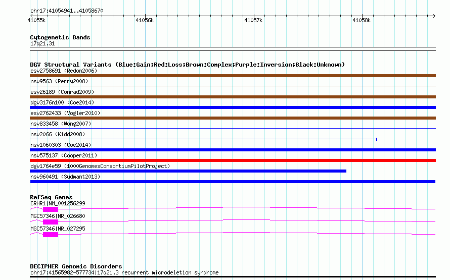 Variant DetailsVariant: nsv960491| Internal ID | 18595742 | | Landmark | | | Location Information | | | Cytoband | 17q21.31 | | Allele length | | Assembly | Allele length | | hg38 | 3730 | | hg19 | 3730 | | hg18 | 3730 |