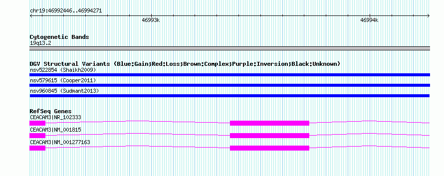 Variant DetailsVariant: nsv960845| Internal ID | 18596092 | | Landmark | | | Location Information | | | Cytoband | 19q13.2 | | Allele length | | Assembly | Allele length | | hg38 | 1826 | | hg19 | 1826 | | hg18 | 1826 |