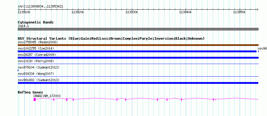 Variant DetailsVariant: nsv961492| Internal ID | 18596738 | | Landmark | | | Location Information | | | Cytoband | 2q13 | | Allele length | | Assembly | Allele length | | hg38 | 44588 | | hg19 | 44588 | | hg18 | 44588 |