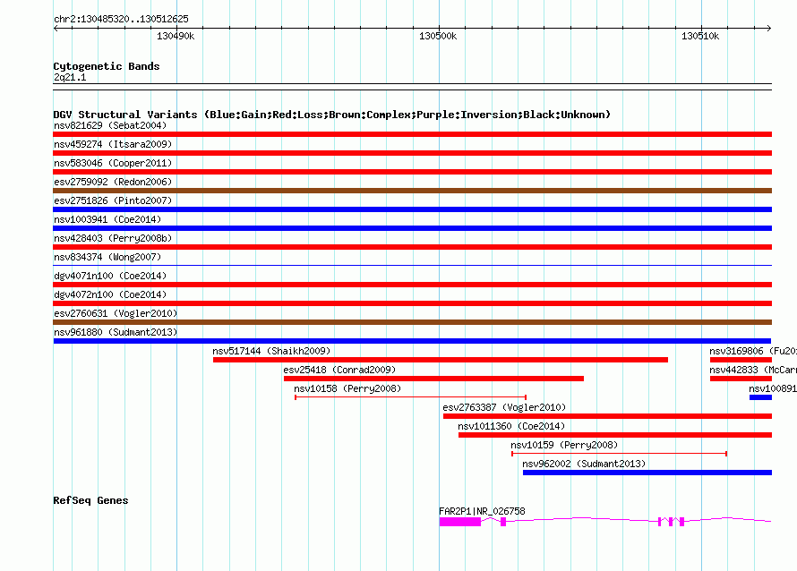 Variant DetailsVariant: nsv961880| Internal ID | 18597126 | | Landmark | | | Location Information | | | Cytoband | 2q21.1 | | Allele length | | Assembly | Allele length | | hg38 | 27306 | | hg19 | 27306 | | hg18 | 27306 |