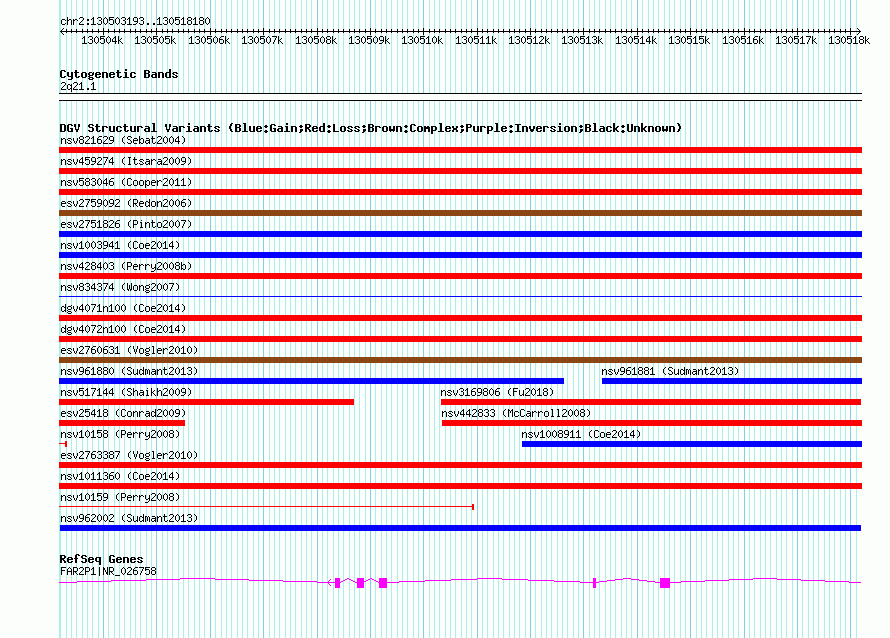 Variant DetailsVariant: nsv962002| Internal ID | 18597248 | | Landmark | | | Location Information | | | Cytoband | 2q21.1 | | Allele length | | Assembly | Allele length | | hg38 | 14988 | | hg19 | 14988 | | hg18 | 14988 |