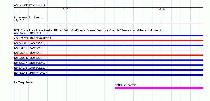 Variant DetailsVariant: nsv962248| Internal ID | 18597492 | | Landmark | | | Location Information | | | Cytoband | 17p13.2 | | Allele length | | Assembly | Allele length | | hg38 | 1980 | | hg19 | 1980 | | hg18 | 1980 |