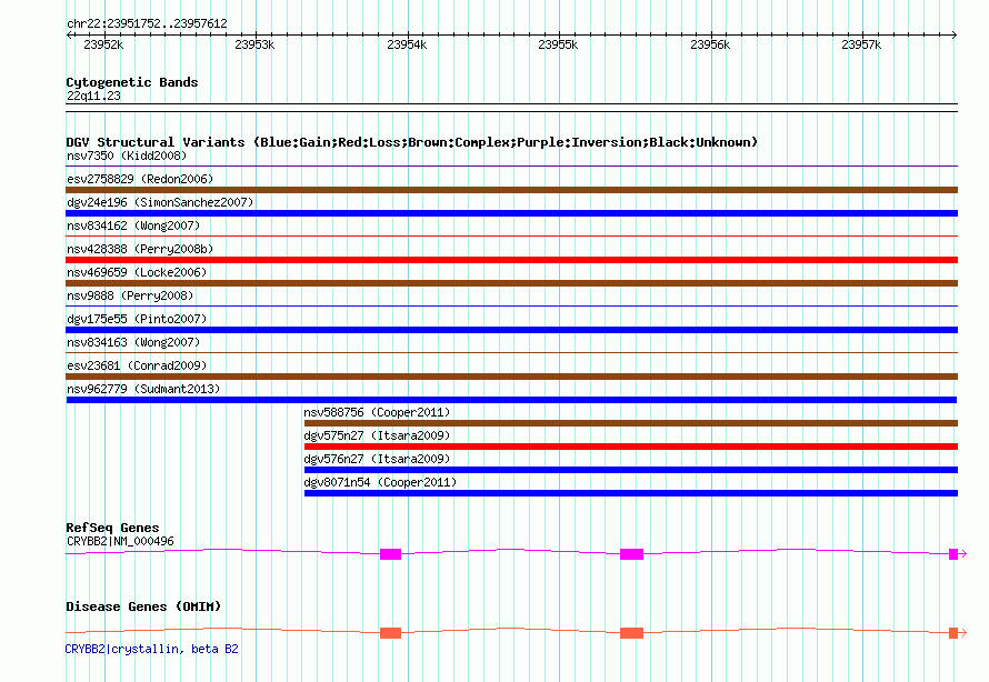 Variant DetailsVariant: nsv962779| Internal ID | 18598021 | | Landmark | | | Location Information | | | Cytoband | 22q11.23 | | Allele length | | Assembly | Allele length | | hg38 | 5861 | | hg19 | 5861 | | hg18 | 5861 |