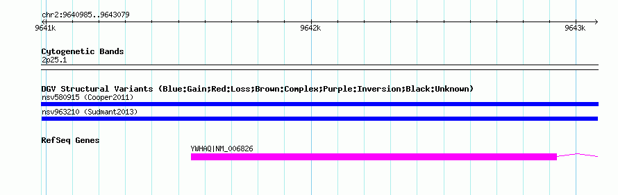Variant DetailsVariant: nsv963210| Internal ID | 18598451 | | Landmark | | | Location Information | | | Cytoband | 2p25.1 | | Allele length | | Assembly | Allele length | | hg38 | 2095 | | hg19 | 2095 | | hg18 | 2095 |