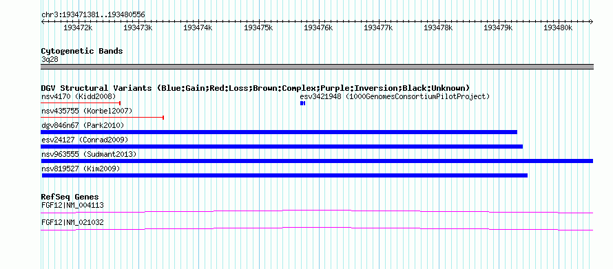 | | Variant Type | CNV duplication | | Copy Number | | | Allele State | | | Allele Origin | | | Probe Count | | | Validation Flag | | | Merged Status | M | | Merged Variants | | | Supporting Variants | nssv2761847 | | Samples | HGDP00778 | | Known Genes | FGF12 | | Method | Sequencing | | Analysis | Human CNVs | | Platform | Not reported | | Comments | | | Reference | Sudmant_et_al_2013 | | Pubmed ID | 23825009 | | Accession Number(s) | nsv963555