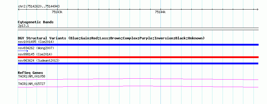 Variant DetailsVariant: nsv963624| Internal ID | 18598864 | | Landmark | | | Location Information | | | Cytoband | 2p12 | | Allele length | | Assembly | Allele length | | hg38 | 2324 | | hg19 | 2324 | | hg18 | 2324 |