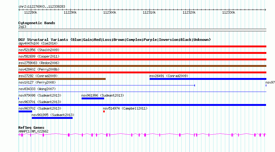 Variant DetailsVariant: nsv963701| Internal ID | 18598941 | | Landmark | | | Location Information | | | Cytoband | 2q13 | | Allele length | | Assembly | Allele length | | hg38 | 62381 | | hg19 | 62381 | | hg18 | 62381 |
