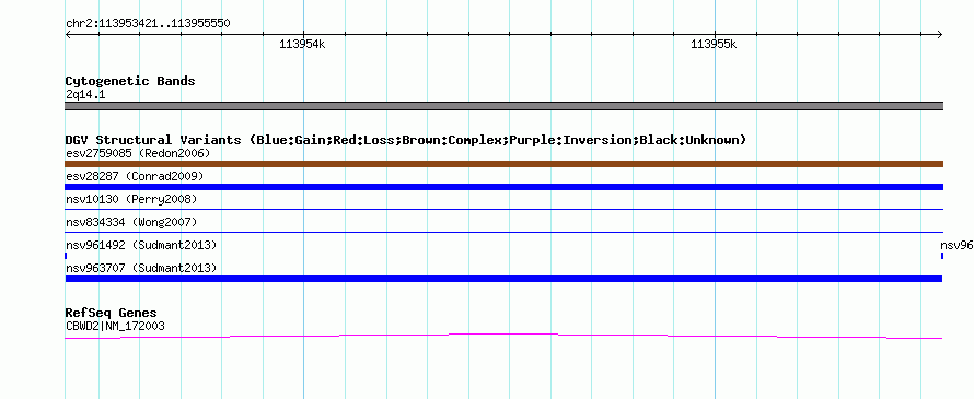 Variant DetailsVariant: nsv963707| Internal ID | 18598947 | | Landmark | | | Location Information | | | Cytoband | 2q13 | | Allele length | | Assembly | Allele length | | hg38 | 2130 | | hg19 | 2130 | | hg18 | 2130 |
