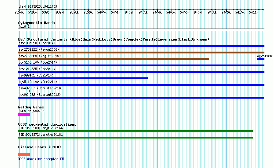 | | Variant Type | CNV duplication | | Copy Number | | | Allele State | | | Allele Origin | | | Probe Count | | | Validation Flag | | | Merged Status | M | | Merged Variants | | | Supporting Variants | nssv2313198, nssv2313199, nssv2313201, nssv2313200, nssv2313204, nssv2313205, nssv2313197, nssv2313203, nssv2313206, nssv2313202 | | Samples | HGDP01284, HGDP00665, HGDP00998, HGDP00521, HGDP00778, HGDP01307, HGDP00542, HGDP01029, HGDP00456, HGDP00927 | | Known Genes | DRD5 | | Method | Sequencing | | Analysis | lineage specific fixed duplications | | Platform | Not reported | | Comments | | | Reference | Sudmant_et_al_2013 | | Pubmed ID | 23825009 | | Accession Number(s) | nsv964032