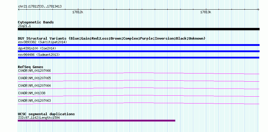 | | Variant Type | CNV duplication | | Copy Number | | | Allele State | | | Allele Origin | | | Probe Count | | | Validation Flag | | | Merged Status | M | | Merged Variants | | | Supporting Variants | nssv2245705, nssv2245697, nssv2245701, nssv2245703, nssv2245698, nssv2245700, nssv2245696, nssv2245704, nssv2245699, nssv2245702 | | Samples | HGDP01284, HGDP00665, HGDP00998, HGDP00521, HGDP00778, HGDP01307, HGDP00542, HGDP01029, HGDP00456, HGDP00927 | | Known Genes | CXADR | | Method | Sequencing | | Analysis | lineage specific fixed duplications | | Platform | Not reported | | Comments | | | Reference | Sudmant_et_al_2013 | | Pubmed ID | 23825009 | | Accession Number(s) | nsv964486