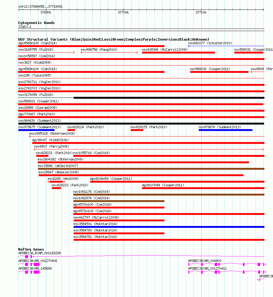 Variant DetailsVariant: nsv964630| Internal ID | 18599867 | | Landmark | | | Location Information | | | Cytoband | 22q13.1 | | Allele length | | Assembly | Allele length | | hg38 | 31624 | | hg19 | 31624 | | hg18 | 31624 |