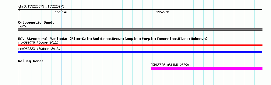 Variant DetailsVariant: nsv965223| Internal ID | 18600457 | | Landmark | | | Location Information | | | Cytoband | 3q25.2 | | Allele length | | Assembly | Allele length | | hg38 | 2401 | | hg19 | 2401 | | hg18 | 2401 |