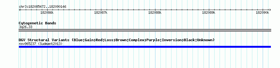 Variant DetailsVariant: nsv965237| Internal ID | 18253785 | | Landmark | | | Location Information | | | Cytoband | 3q26.33 | | Allele length | | Assembly | Allele length | | hg38 | 4675 | | hg19 | 4675 | | hg18 | 4675 |