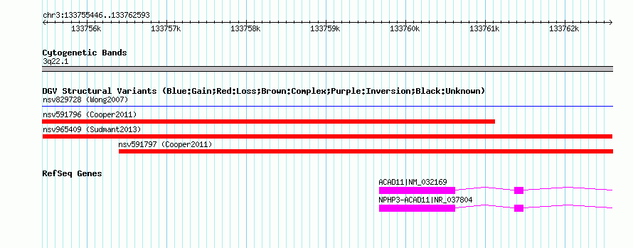Variant DetailsVariant: nsv965409| Internal ID | 18253957 | | Landmark | | | Location Information | | | Cytoband | 3q22.1 | | Allele length | | Assembly | Allele length | | hg38 | 7148 | | hg19 | 7148 | | hg18 | 7148 |