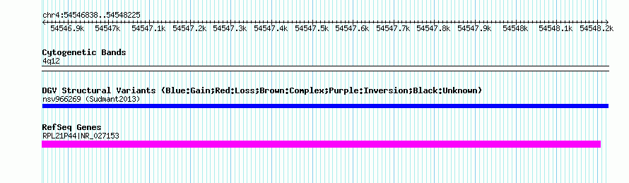 Variant DetailsVariant: nsv966269| Internal ID | 18601499 | | Landmark | | | Location Information | | | Cytoband | 4q12 | | Allele length | | Assembly | Allele length | | hg38 | 1388 | | hg19 | 1388 | | hg18 | 1388 |