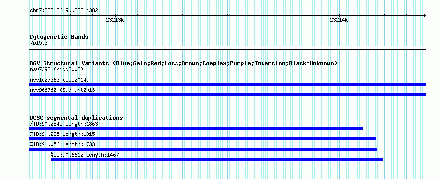 | Variant Type | CNV duplication | Copy Number | | Allele State | | Allele Origin | | Probe Count | | Validation Flag | | Merged Status | M | Merged Variants | | Supporting Variants | nssv2436878, nssv2436885, nssv2436884, nssv2436879, nssv2436886, nssv2436883, nssv2436882, nssv2436877, nssv2436880, nssv2436881 | Samples | HGDP01284, HGDP00665, HGDP00998, HGDP00521, HGDP00778, HGDP01307, HGDP00542, HGDP01029, HGDP00456, HGDP00927 | Known Genes | | Method | Sequencing | Analysis | lineage specific fixed duplications | Platform | Not reported | Comments | | Reference | Sudmant_et_al_2013 | Pubmed ID | 23825009 | Accession Number(s) | nsv966762