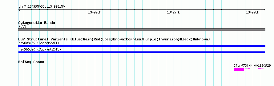 Variant DetailsVariant: nsv966890| Internal ID | 18602119 | | Landmark | | | Location Information | | | Cytoband | 7q33 | | Allele length | | Assembly | Allele length | | hg38 | 3116 | | hg19 | 3116 | | hg18 | 3116 |