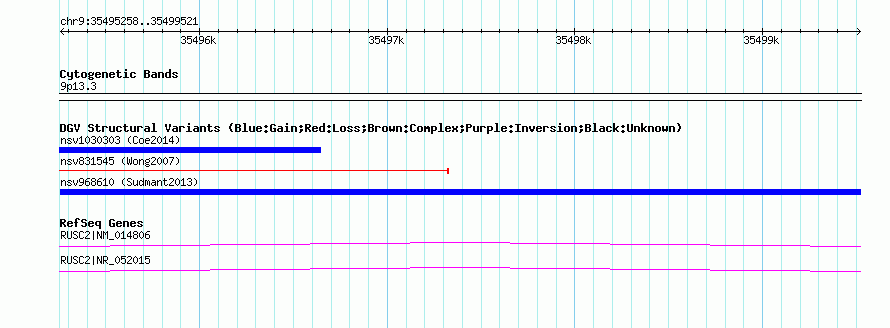 Variant DetailsVariant: nsv968610| Internal ID | 18603838 | | Landmark | | | Location Information | | | Cytoband | 9p13.3 | | Allele length | | Assembly | Allele length | | hg38 | 4264 | | hg19 | 4264 | | hg18 | 4264 |
