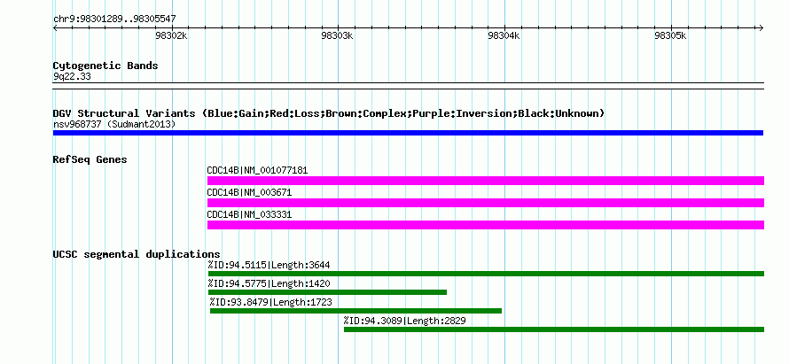 Variant DetailsVariant: nsv968737| Internal ID | 18257279 | | Landmark | | | Location Information | | | Cytoband | 9q22.32 | | Allele length | | Assembly | Allele length | | hg38 | 4259 | | hg19 | 4259 | | hg18 | 4259 |