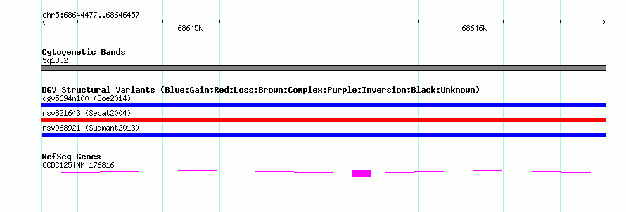 Variant DetailsVariant: nsv968921| Internal ID | 18604149 | | Landmark | | | Location Information | | | Cytoband | 5q13.2 | | Allele length | | Assembly | Allele length | | hg38 | 1981 | | hg19 | 1981 | | hg18 | 1981 |