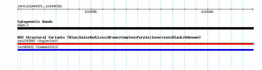 Variant DetailsVariant: nsv969432| Internal ID | 18604659 | | Landmark | | | Location Information | | | Cytoband | 6q16.3 | | Allele length | | Assembly | Allele length | | hg38 | 2021 | | hg19 | 2021 | | hg18 | 2021 |