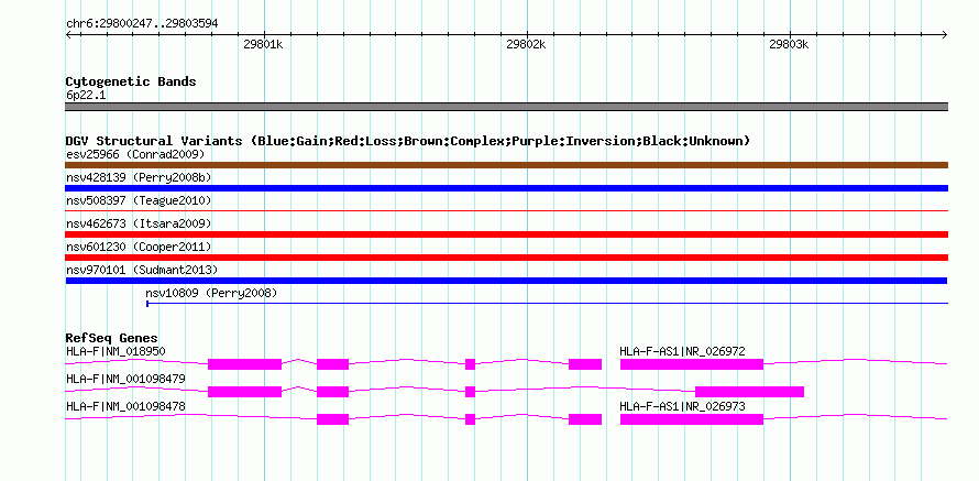 Variant DetailsVariant: nsv970101| Internal ID | 18605325 | | Landmark | | | Location Information | | | Cytoband | 6p22.1 | | Allele length | | Assembly | Allele length | | hg38 | 3348 | | hg19 | 3348 | | hg18 | 3348 |