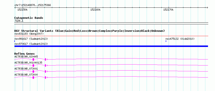 Variant DetailsVariant: nsv970617| Internal ID | 18605839 | | Landmark | | | Location Information | | | Cytoband | 7q36.1 | | Allele length | | Assembly | Allele length | | hg38 | 26489 | | hg19 | 26489 | | hg18 | 26489 |