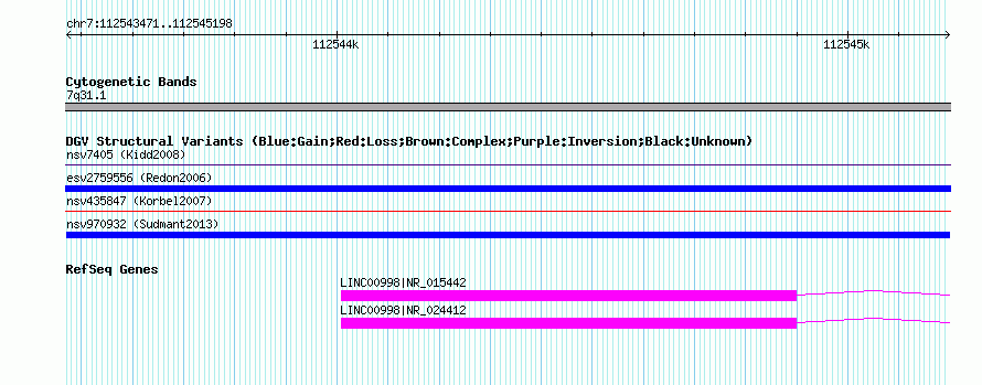 Variant DetailsVariant: nsv970932| Internal ID | 18606154 | | Landmark | | | Location Information | | | Cytoband | 7q31.1 | | Allele length | | Assembly | Allele length | | hg38 | 1728 | | hg19 | 1728 | | hg18 | 1728 |