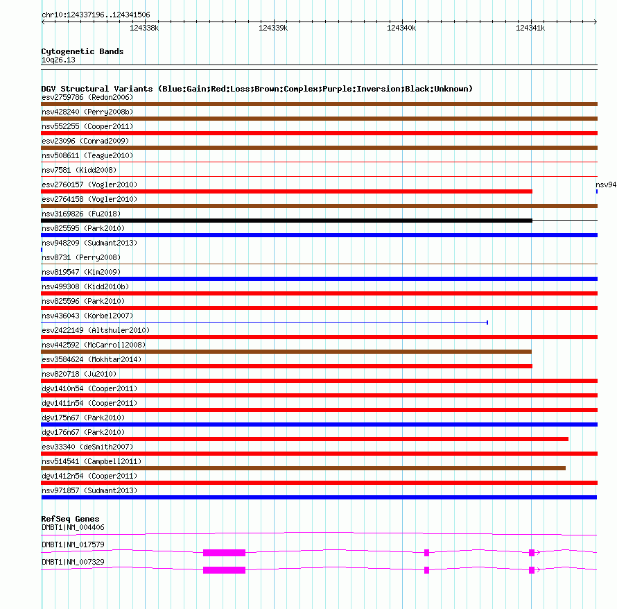 Variant DetailsVariant: nsv971857| Internal ID | 18607074 | | Landmark | | | Location Information | | | Cytoband | 10q26.13 | | Allele length | | Assembly | Allele length | | hg38 | 4311 | | hg19 | 4311 | | hg18 | 4311 |