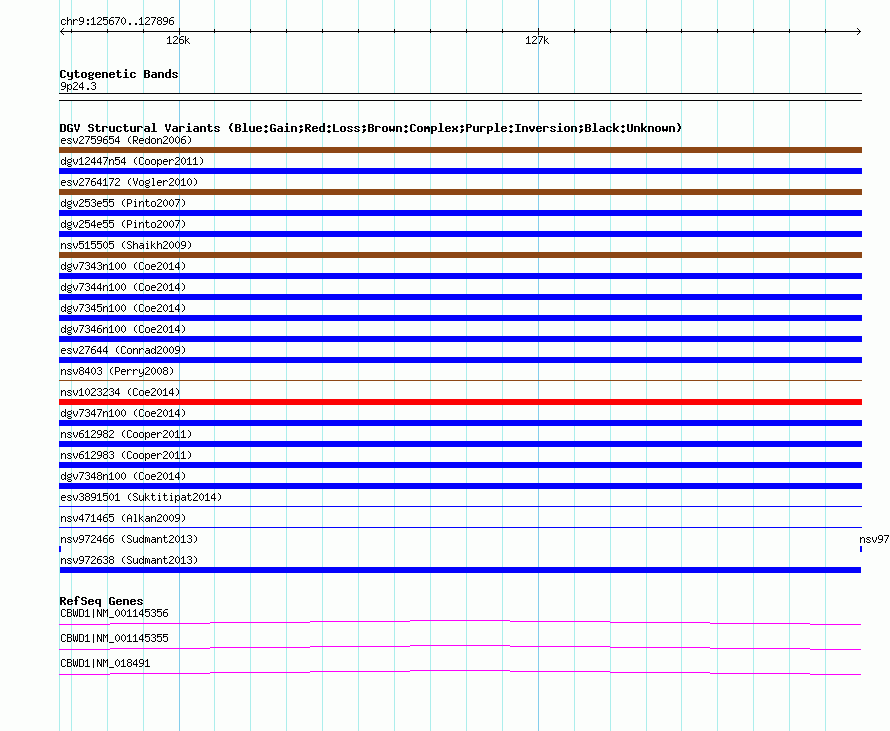 Variant DetailsVariant: nsv972638| Internal ID | 18607854 | | Landmark | | | Location Information | | | Cytoband | 9p24.3 | | Allele length | | Assembly | Allele length | | hg38 | 2227 | | hg19 | 2227 | | hg18 | 2227 |