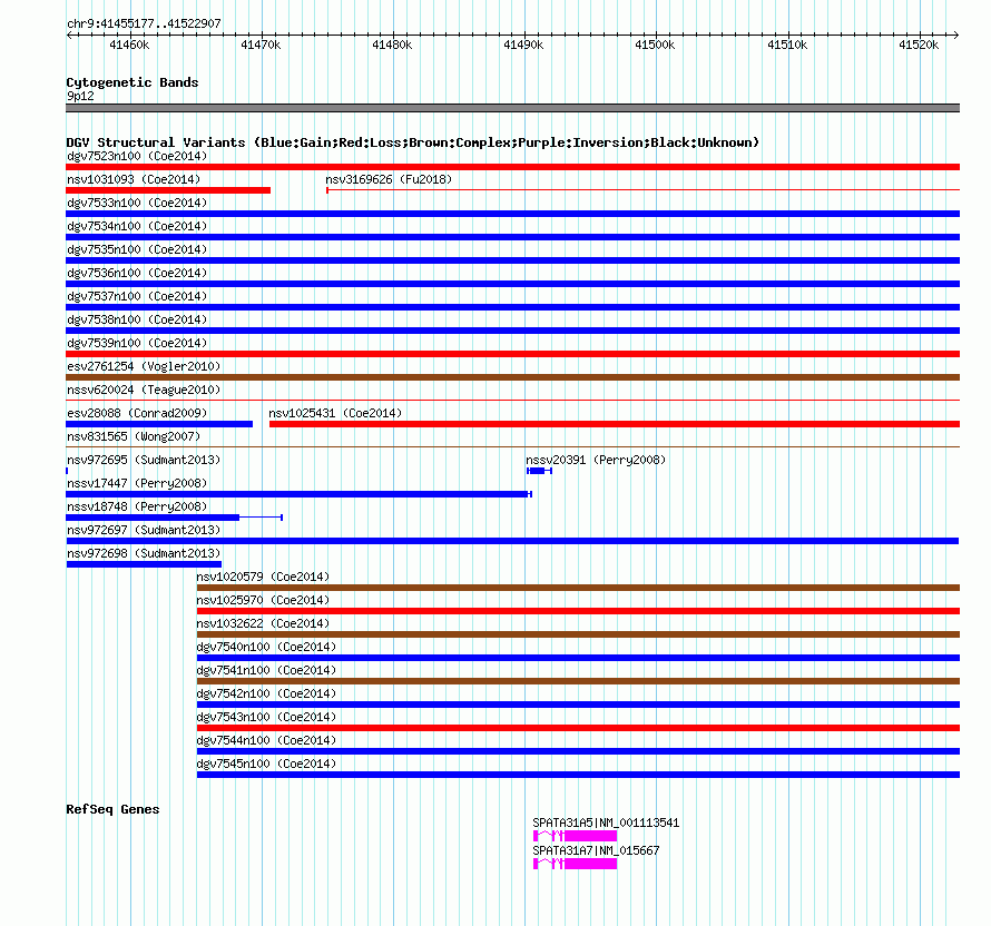 Variant DetailsVariant: nsv972697| Internal ID | 18607913 | | Landmark | | | Location Information | | | Cytoband | 9p12 | | Allele length | | Assembly | Allele length | | hg38 | 67731 | | hg19 | 67731 | | hg18 | 67731 |