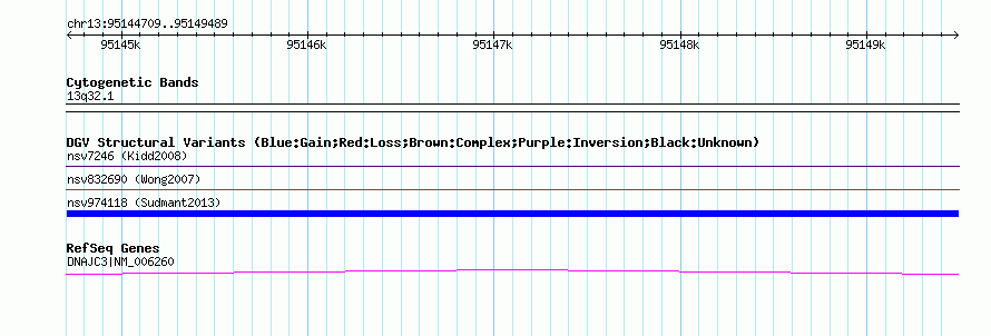 Variant DetailsVariant: nsv974118| Internal ID | 18609331 | | Landmark | | | Location Information | | | Cytoband | 13q32.1 | | Allele length | | Assembly | Allele length | | hg38 | 4781 | | hg19 | 4781 | | hg18 | 4781 |
