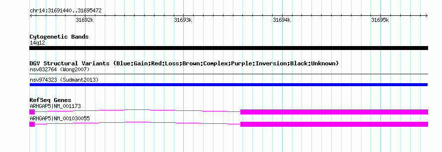 Variant DetailsVariant: nsv974323| Internal ID | 18609534 | | Landmark | | | Location Information | | | Cytoband | 14q12 | | Allele length | | Assembly | Allele length | | hg38 | 4033 | | hg19 | 4033 | | hg18 | 4033 |
